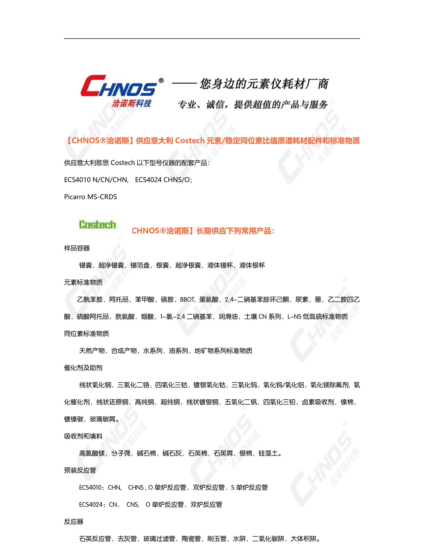 供應意大(dà)利歌(gē)思Costech系列元素儀耗材配件(jiàn)及标準物(wù)質