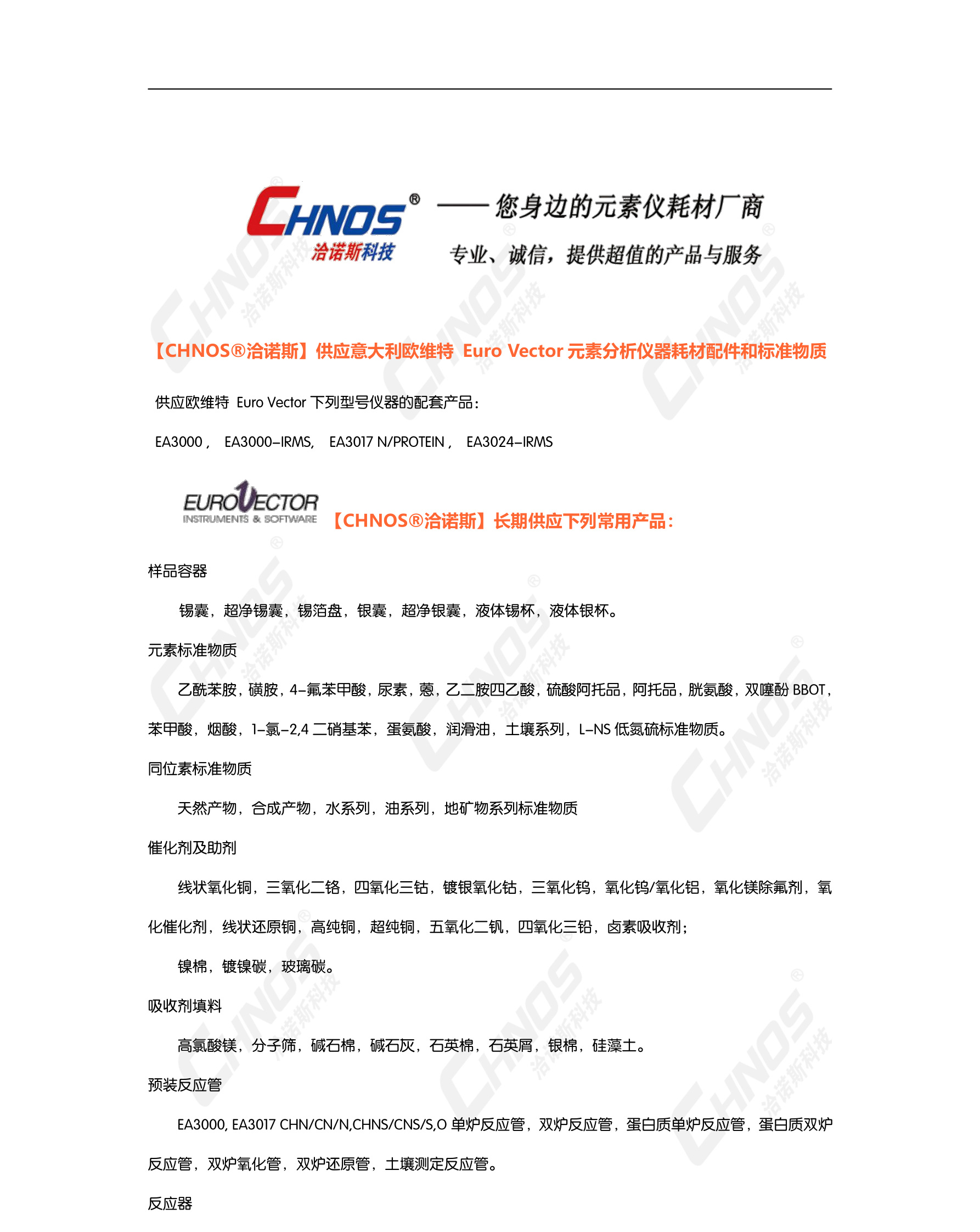 供應意大(dà)利歐維特Euro Vector元素分(fēn)析儀耗材配件(jiàn)及标準物(wù)質