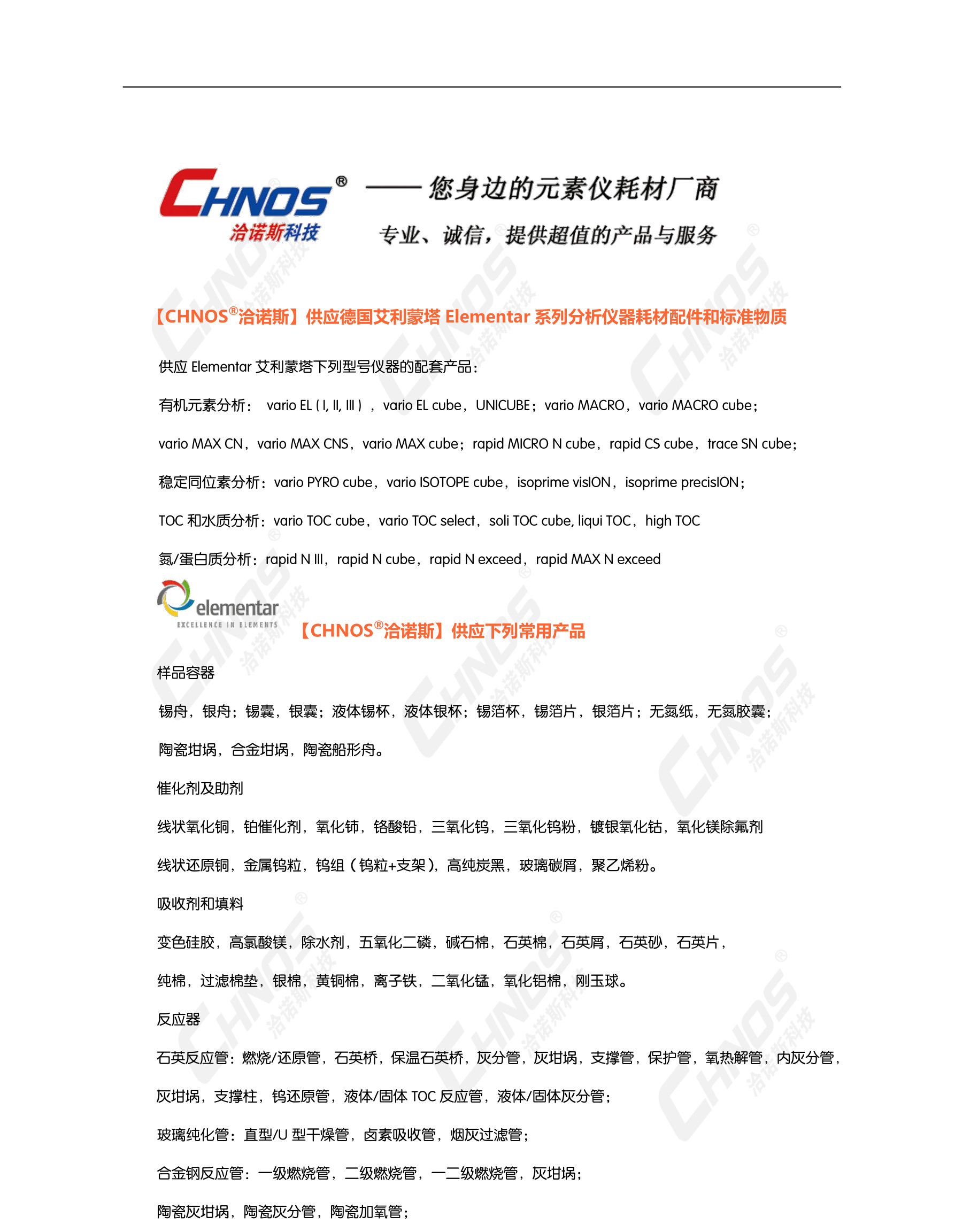 供應德國(guó)艾利蒙塔Elementar系列分(fēn)析儀器(qì)耗材配件(jiàn)及标準物(wù→)質