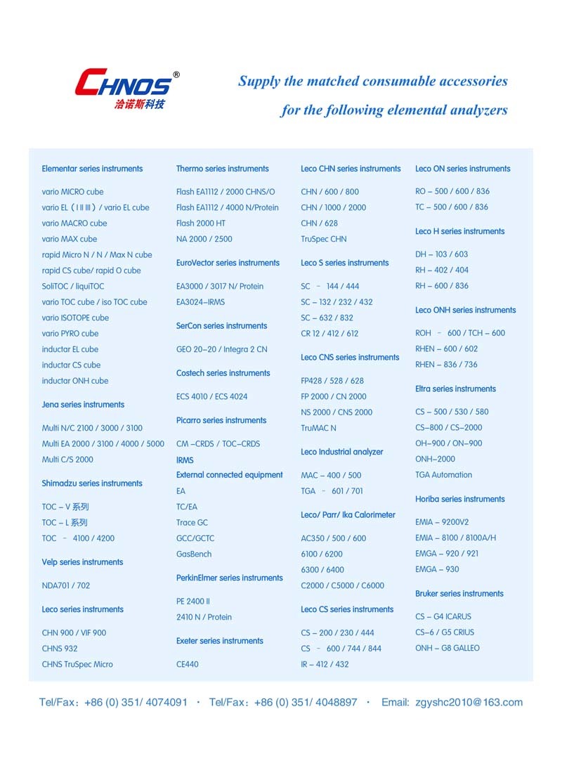 Thermo、EuroVector、Sercon、Costech consumable accessories